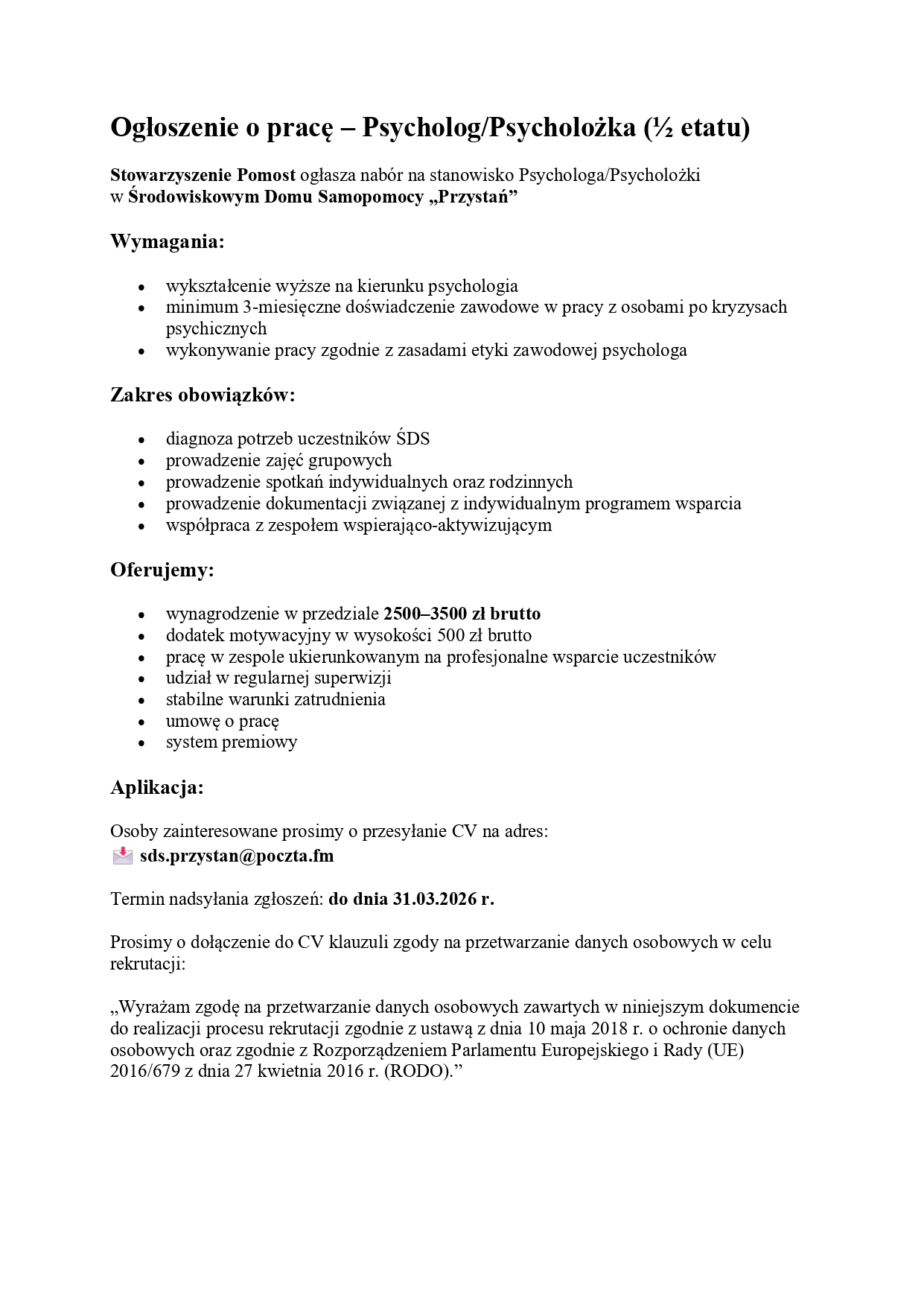 Wyślij email na adres pomost.s@poczta.fm